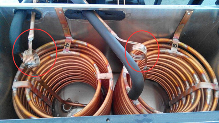 對(duì)于小型工業(yè)冷水機(jī)組,冰箱等制冷設(shè)備中,常使用毛細(xì)管作為節(jié)流裝置,它是一根有規(guī)定長(zhǎng)度的直徑很細(xì)的純銅管,其內(nèi)徑一般為0.5-2mm之間,根據(jù)冰水機(jī)型號(hào)大小選擇合適長(zhǎng)度,以增大液體流動(dòng)時(shí)的阻力,將其加工成螺旋形,會(huì)起到防震作用,防止毛細(xì)管焊接地方斷裂等現(xiàn)象發(fā)生。